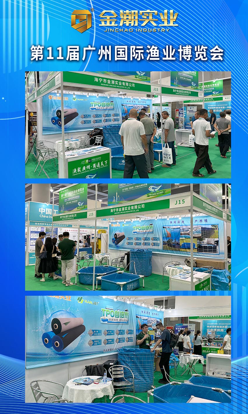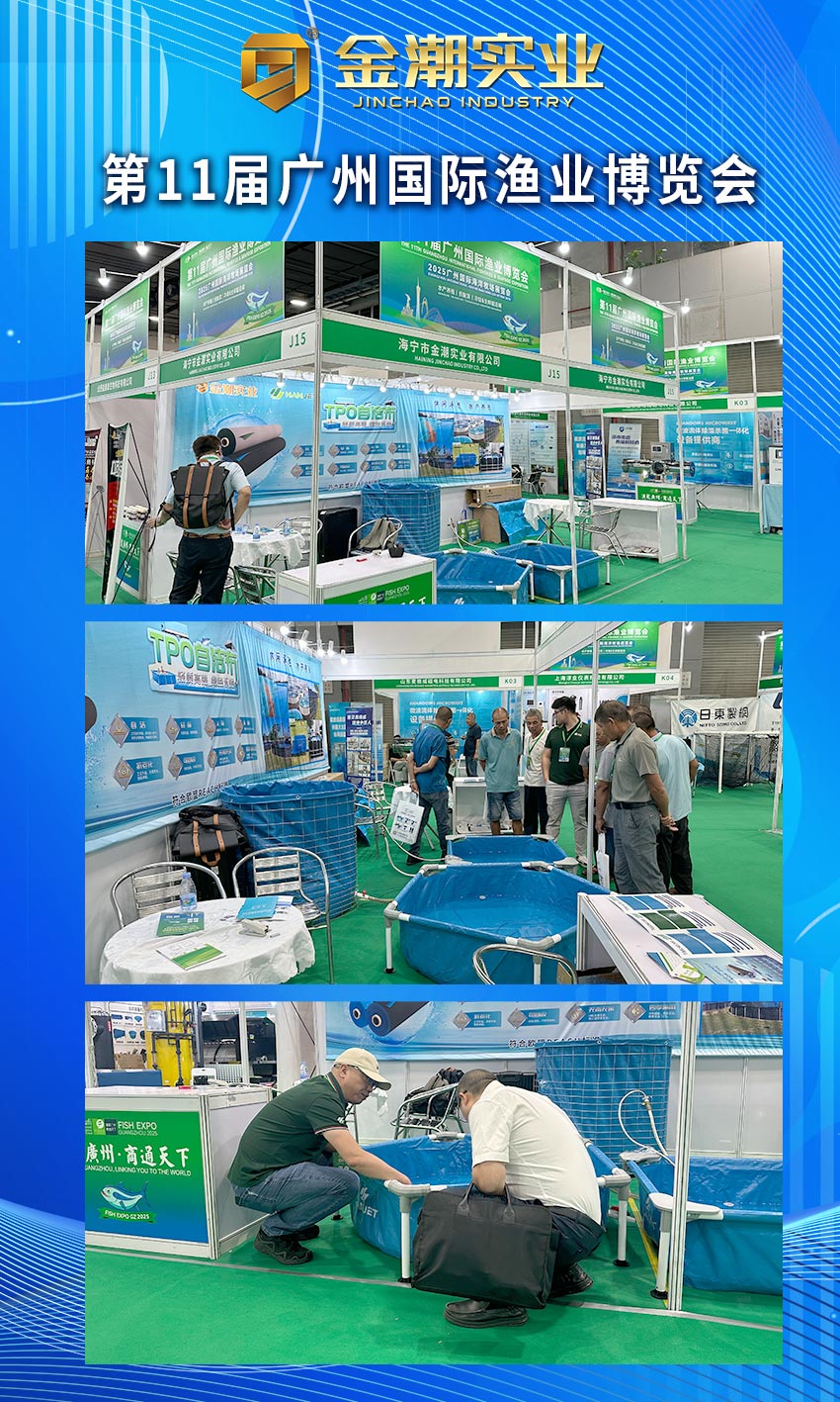 金潮“TPO 自洁布“登陆广州国际渔业博览会,材料轻质高强,无毒无害、绿色低碳,环保可回收,使用便捷,不占耕地,轻松满足家庭家居日用、商用规模化水产养殖需求,赋能水产养殖业实现安全健康、绿色环保养殖。